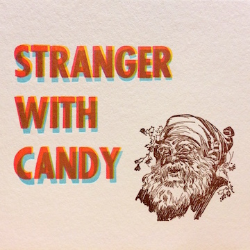 Four-ink letterpress card, with “misaligned” lettering inspired by the music video below.